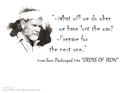 On the occasion of the ongoing wars in our world today -in Asia (Yemen, Afghanistan, Syria, etc.), in Africa (Somalia, Mali, Libya, etc.) and in Europe (after the 2nd World War in Northern Ireland, in Basque Country, in Cyprus, in Yugoslavia and) since 2014 in Ukraine- i post quotes from Sam Peckinpah an unconventional director-artist and in his masterpiece anti-war film "Cross Of Iron".